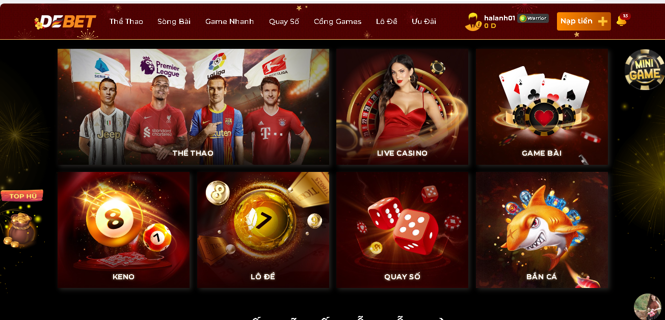 Những sản phẩm cá cược mà sân chơi Debet cung cấp cho anh em có đa dạng thể loại khác nhau, và nhà cái vẫn đang không ngừng cập nhập để cải thiện kho game của mình. Dưới đây là một số siêu phẩm đẳng cấp mà bạn sẽ được trải nghiệm khi trở thành hội viên và đăng nhập Debet.