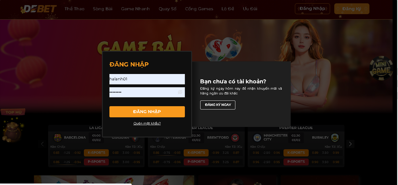 Đăng nhập Debet được thoải mái trải nghiệm siêu phẩm