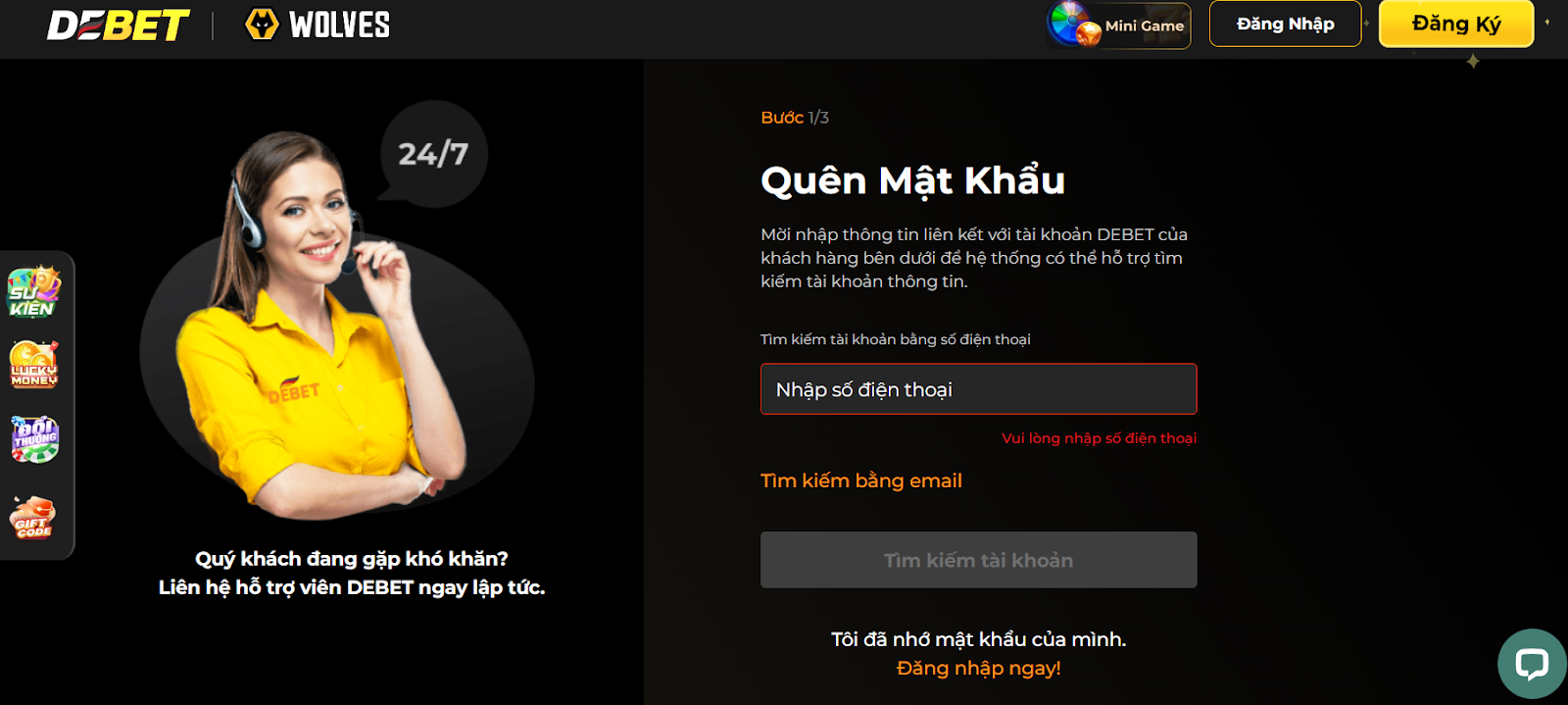 Khi quên mất tài khoản game của mình thì anh em có thể liên hệ với bộ phận hỗ trợ khách hàng để được cấp lại mã đăng nhập khác để đổi mật khẩu. Hoặc người chơi cũng có thể tự lấy lại mật khẩu game tại Debet của mình qua những bước tiến hành sau đây: