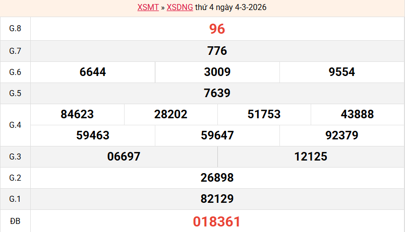 Bảng kết quả Đà Nẵng ngày 04/03/2026 tuần trước