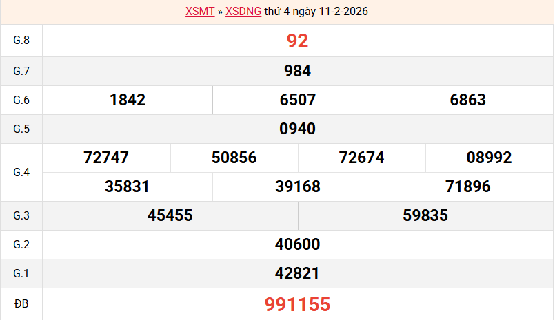 Bảng kết quả Đà Nẵng ngày 11/02/2026 tuần trước