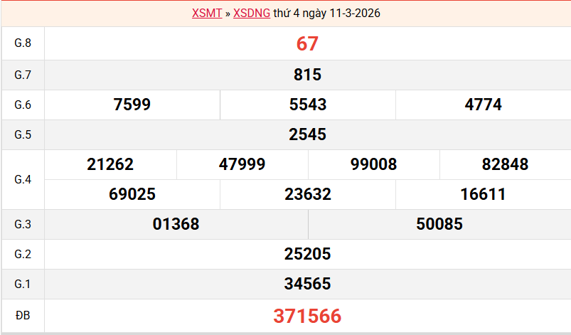 Bảng kết quả Đà Nẵng ngày 11/03/2026 tuần trước