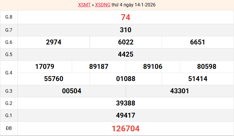 Bảng kết quả Đà Nẵng ngày 14/01/2026 tuần trước