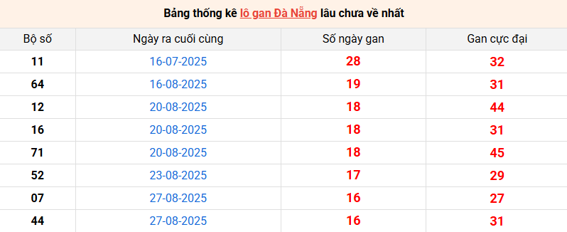 Bảng thống kê lô gan Đà Nẵng lâu về nhất 25/102025