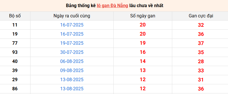 Bảng thống kê lô gan Đà Nẵng lâu về nhất 27/92025