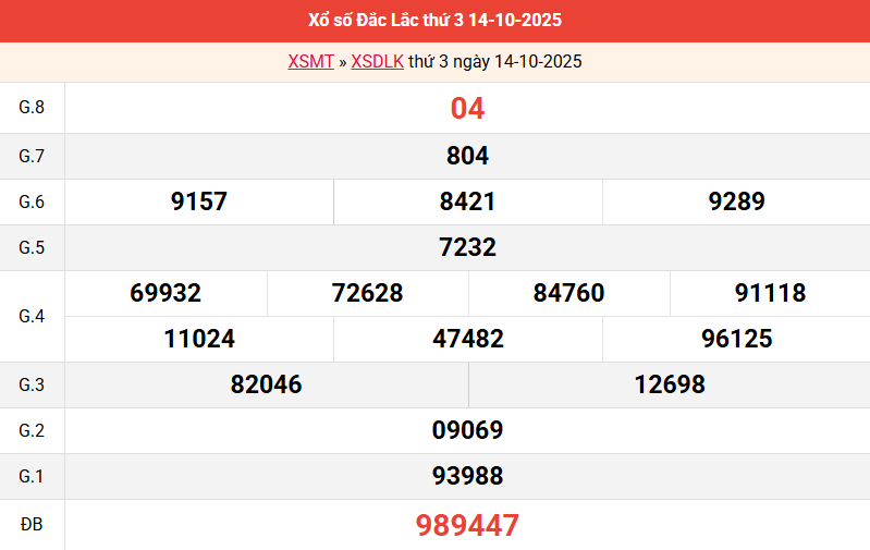 Mời các bạn xem lại bảng kết quả kỳ trước với giải đặc biệt, giải tám, lô tô 2 số để có thể đưa ra nhận định, phân tích dự đoán DLK ngày 21/10 năm 2025 chuẩn xác nhất.