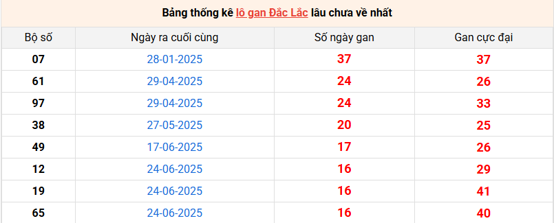 Bảng thống kê lô gan Đắk Lắk lâu về nhất 21/10/2025