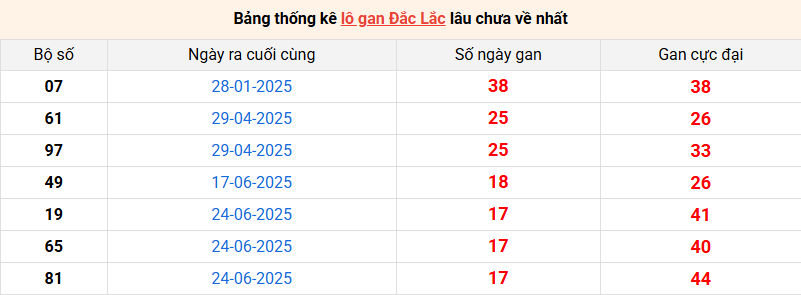 Bảng thống kê lô gan Đắk Lắk lâu về nhất 28/10/2025