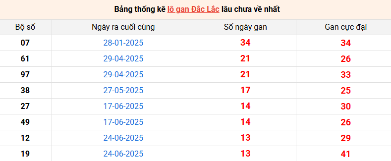 Bảng thống kê lô gan Đắk Lắk lâu về nhất 30/9/2025