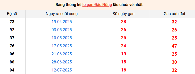 Bảng thống kê lô gan Đắc Nông lâu về nhất 08/11/2025