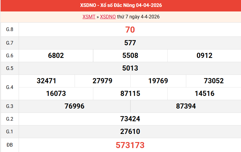 Bảng kết quả Đắk Nông ngày 04/04/2026 tuần trước