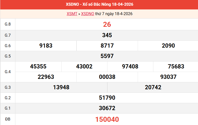 Bảng kết quả Đắk Nông ngày 18/04/2026 tuần trước