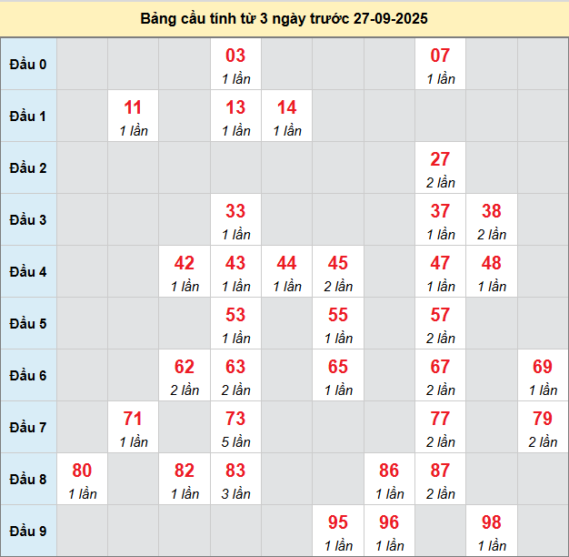 Soi cầu Đắk Nông ngày 27/9/2025 theo bảng bạch thủ 3 ngày