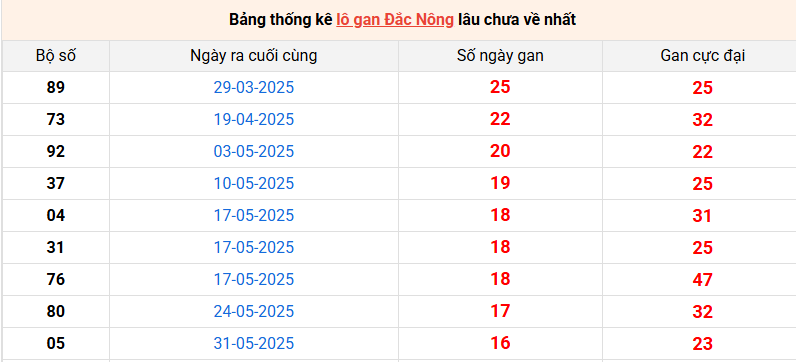 Bảng thống kê lô gan Đắc Nông lâu về nhất 27/9/2025
