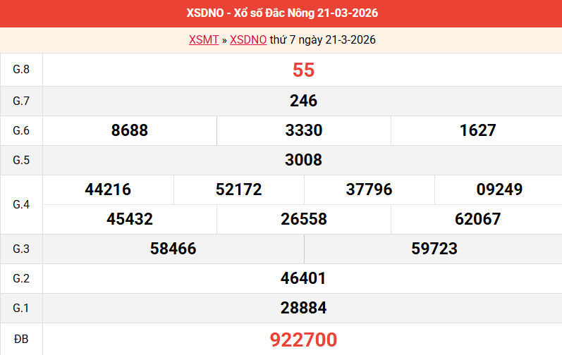 Bảng kết quả Đắk Nông ngày 21/03/2026 tuần trước