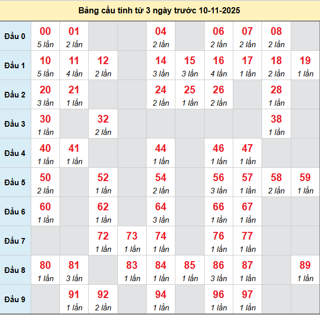 Soi cầu DT 10/11/2025 hôm nay miễn phí được lấy từ các dữ liệu thống kê cầu động chạy nhiều kỳ trước đó, chắc chắn sẽ giúp người chơi soi cầu loto bạch thủ kỳ này có được tỷ lệ trúng cao nhất.