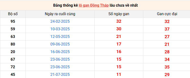 Bảng thống kê lô gan Đồng Tháp lâu về nhất 13/10/2025