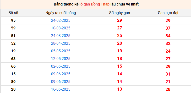 Bảng thống kê lô gan Đồng Tháp lâu về nhất 22/9/2025