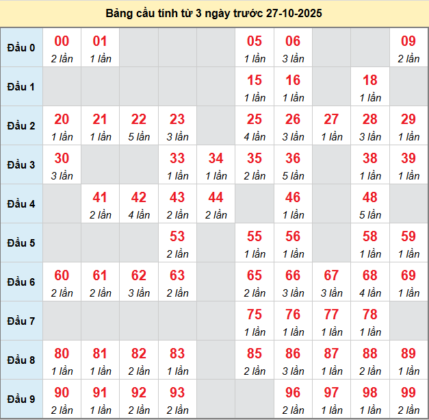Soi cầu DT 27/10/2025 hôm nay miễn phí được lấy từ các dữ liệu thống kê cầu động chạy nhiều kỳ trước đó, chắc chắn sẽ giúp người chơi soi cầu loto bạch thủ kỳ này có được tỷ lệ trúng cao nhất.