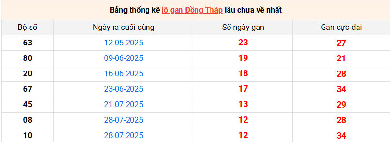 Bảng thống kê lô gan Đồng Tháp lâu về nhất 27/10/2025