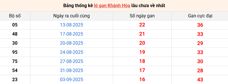 Bảng lô gan Khánh Hòa lâu về nhất 02/11/2025