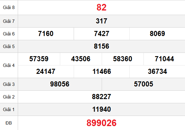 Mời các bạn xem lại bảng kết quả kỳ trước với giải đặc biệt, giải tám, lô tô 2 số để có thể đưa ra nhận định dự đoán KH ngày hôm nay chuẩn xác nhất.