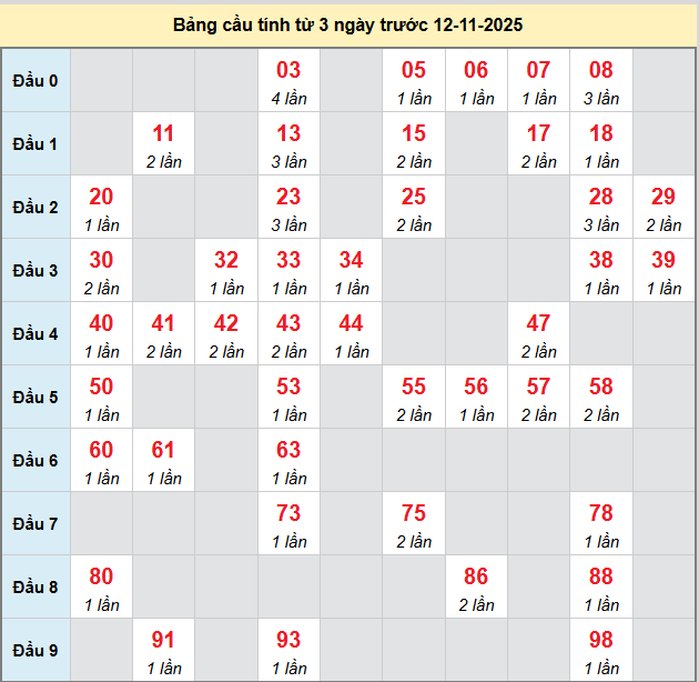 Soi cầu Khánh Hòa ngày 12/11/2025 theo bảng bạch thủ 3 ngày