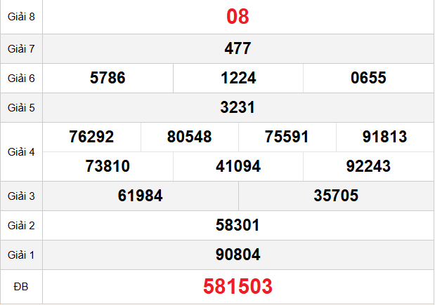 Mời các bạn xem lại bảng kết quả kỳ trước với giải đặc biệt, giải tám, lô tô 2 số để có thể đưa ra nhận định dự đoán KH ngày hôm nay chuẩn xác nhất.