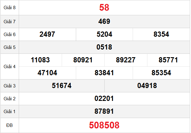 Mời các bạn xem lại bảng kết quả kỳ trước với giải đặc biệt, giải tám, lô tô 2 số để có thể đưa ra nhận định dự đoán KH ngày hôm nay chuẩn xác nhất.