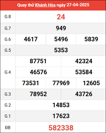 | Dự đoán Khánh Hòa ngày 27 tháng 4 năm 2025 | |