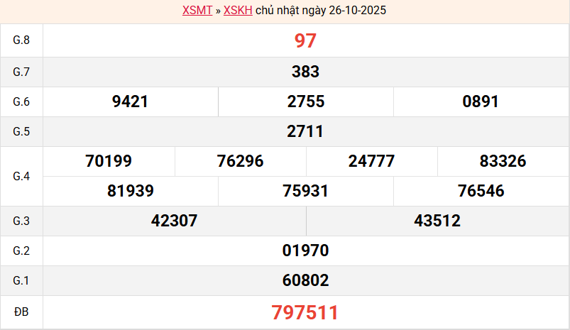 Xem kết quả Khánh Hòa ngày 26/10/2025 tuần trước