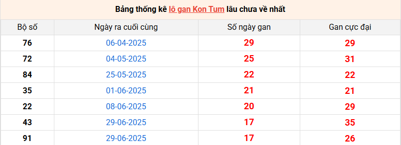 Bảng thống kê lô gan Kon Tum lâu về nhất 02/11/2025