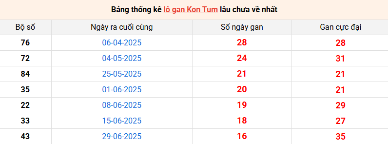 Bảng thống kê lô gan Kon Tum lâu về nhất 26/10/2025