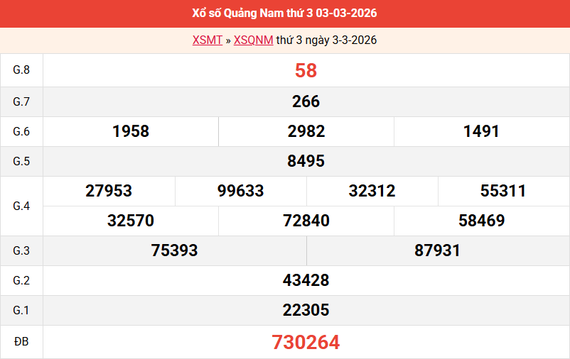 Dự đoán xổ số Quảng Nam 10/03/2026 ❤️ Soi cầu dự đoán xổ số Quảng Nam ngày 10/03/2026 thứ 3 hôm nay: lô giải 8, bao lô 2 số, đặc biệt đầu đuôi, lô tô xiên 2, 3 chiều tối nay và ngày mai tỷ lệ trúng cao được phân tích thần tài miễn phí