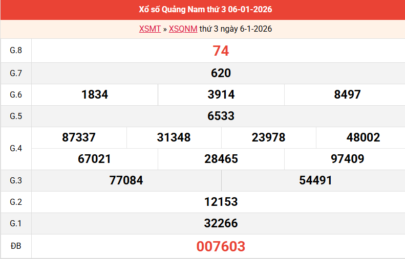 Xem dự đoán xổ số Quảng Nam 13/01/2026 tỷ lệ trúng cực cao được đội ngũ Dự đoán XSMT chúng tôi phân tích và dự báo lô hôm nay chi tiết chính xác, chắc chắn sẽ về bao lô, bạch thủ, lô xiên, kép, xỉu chủ đầu đuôi đặc biệt trong vòng 24 giờ, ngày mai.