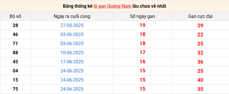 Bảng thống kê lô gan Quảng Nam lâu về nhất 14/10/2025