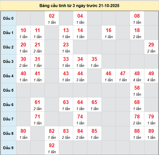 Mời các bạn xem lại bảng kết quả kỳ trước với giải đặc biệt, giải tám, lô tô 2 số để có thể đưa ra nhận định dự đoán QNM ngày 21/10 năm 2025 chuẩn xác nhất.