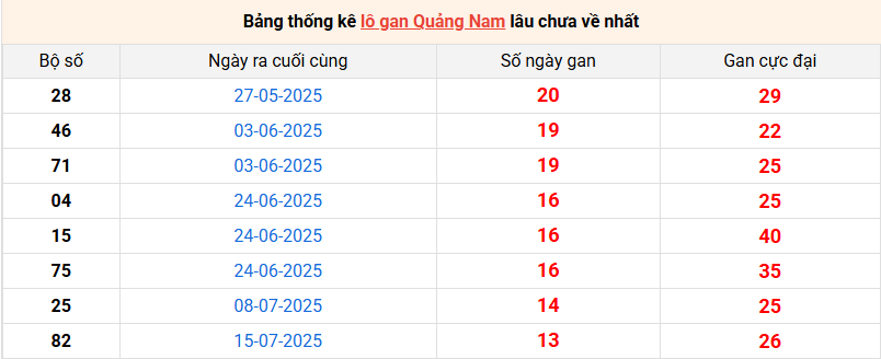 Bảng thống kê lô gan Quảng Nam lâu về nhất 21/10/2025
