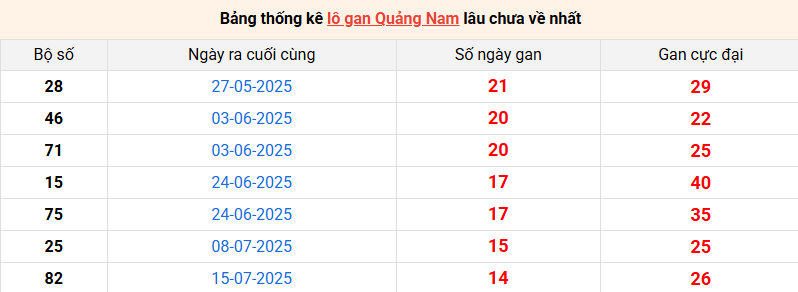 Bảng thống kê lô gan Quảng Nam lâu về nhất 28/10/2025