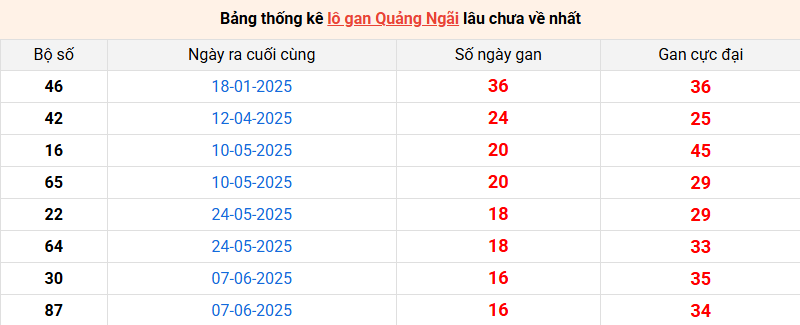 Bảng thống kê lô gan Quảng Ngãi lâu về nhất 04/10/2025