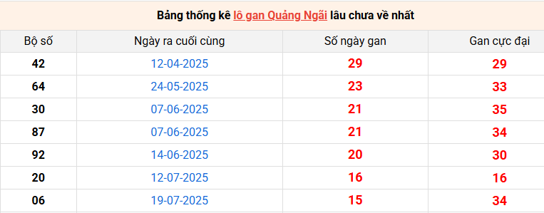 Bảng thống kê lô gan Quảng Ngãi lâu về nhất 08/11/2025