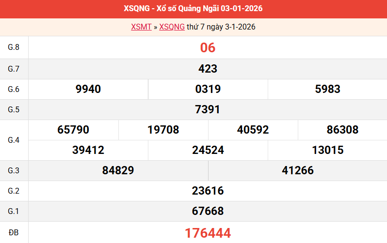 Bảng kết quả Quảng Ngãi ngày 03/01/2026 tuần trước