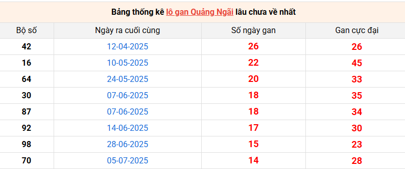 Bảng thống kê lô gan Quảng Ngãi lâu về nhất 18/10/2025