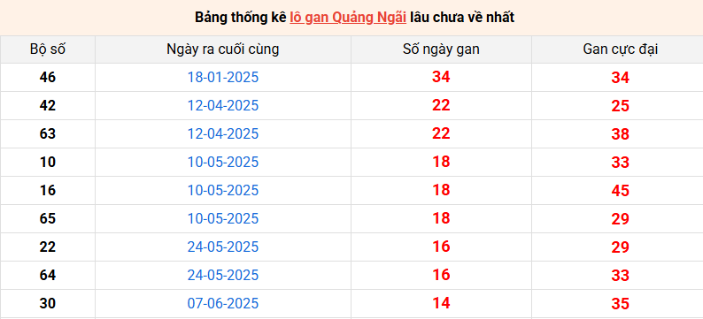 Bảng thống kê lô gan Quảng Ngãi lâu về nhất 20/9/2025