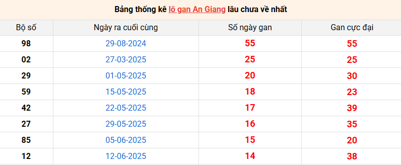 Bảng thống kê lô gan An Giang lâu về nhất 25/9/2025