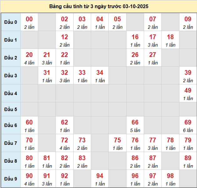Soi cầu Bình Dương ngày 03/10/2025 theo bảng bạch thủ 3 ngày