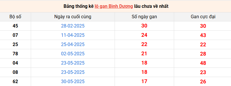 Bảng thống kê lô gan Bình Dương lâu về nhất 03/10/2025