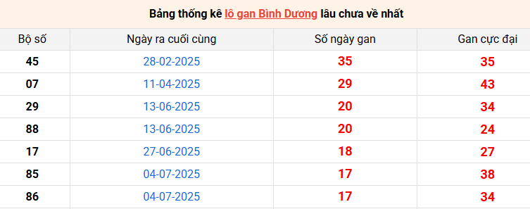Bảng thống kê lô gan Bình Dương lâu về nhất 07/11/2025