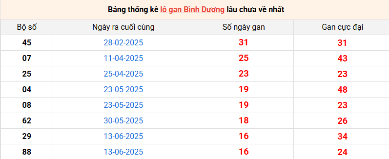 Bảng thống kê lô gan Bình Dương lâu về nhất 10/10/2025