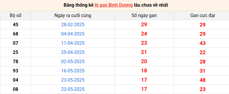 Bảng thống kê lô gan Bình Dương lâu về nhất 26/9/2025